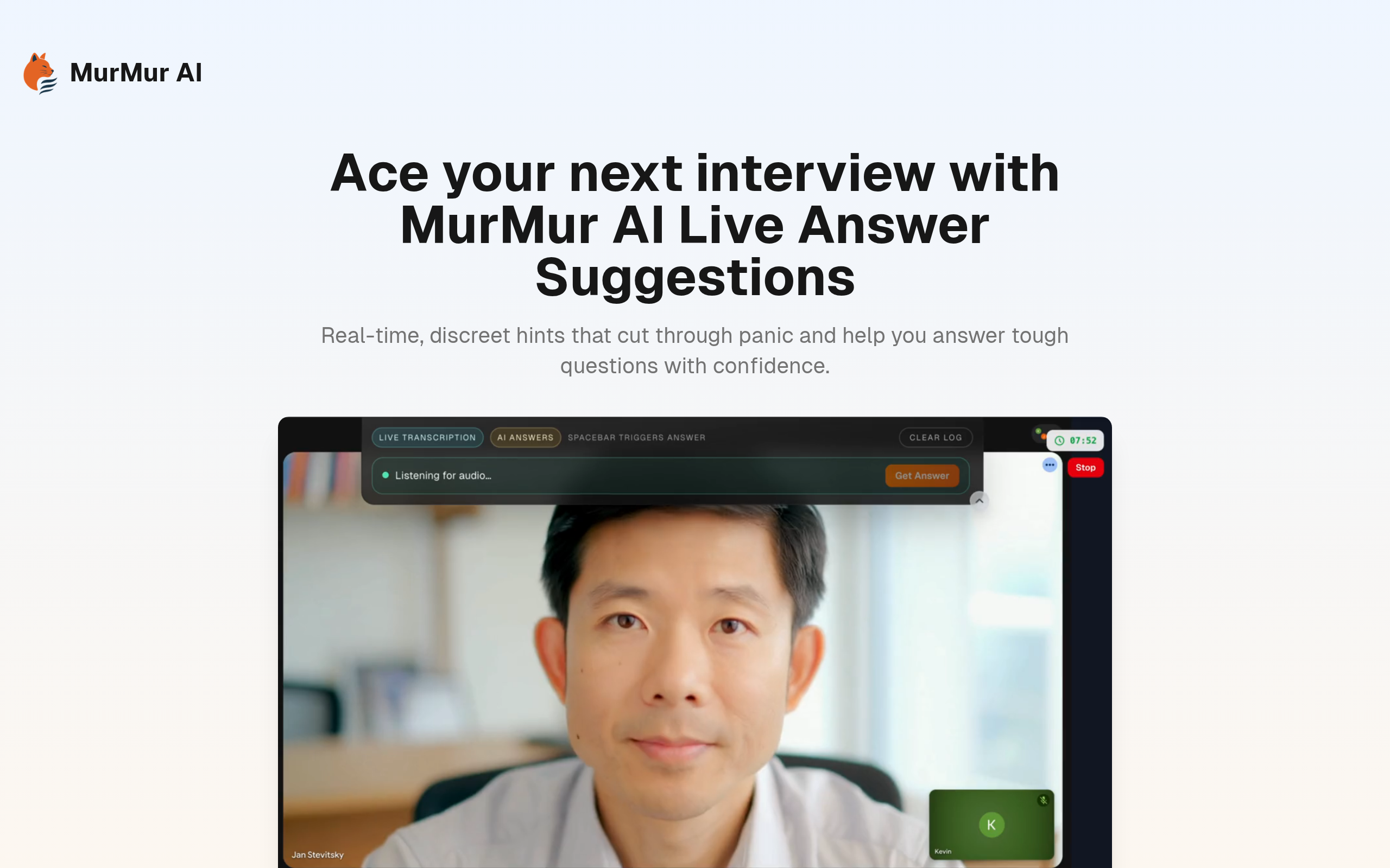 Ace your next interview with MurMur AI Live Answer Suggestions.